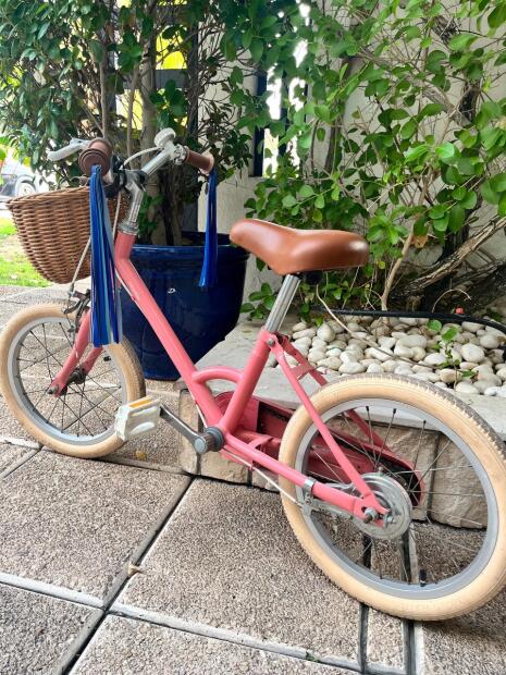 Kids Tokyo bike 16’ in coral color with basket . In perfect condition