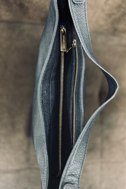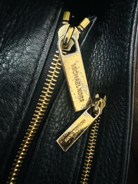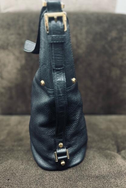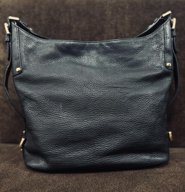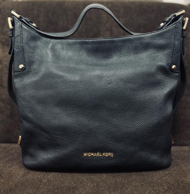 Michael Kors Bedford Belted Large Leather Shoulder Bag Black Belted side detail. Gold tone hardware.