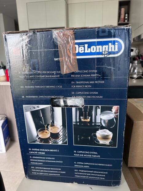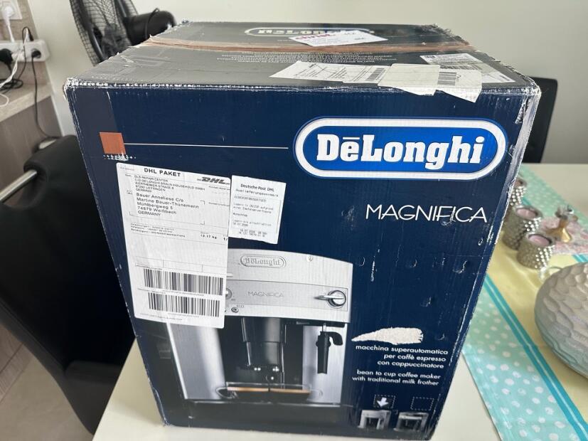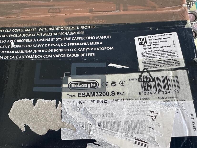 The fully functional DeLonghi coffee machine, model ESAM3200.S, has hardly been used. It was sent for service approximately 1.5 years ago and has remained unopened since. Due to lack of space following a move, it is no longer being used. Please note: European plug!
