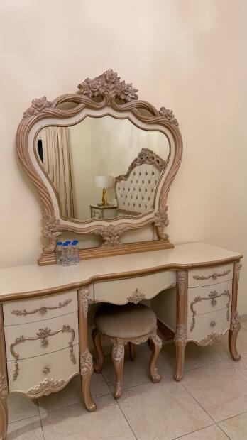 In great condition- bed, 2 side tables, dressing table and chest of drawer.