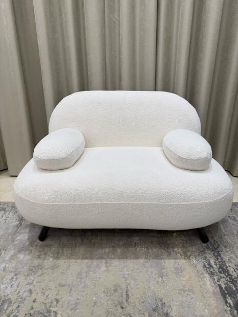 Modern 2-Seater Bouclé Sofa in off-white color. Stylish curved design, soft textured fabric, and in excellent condition. Lightly used and very clean. Perfect for living rooms, bedrooms, or small spaces.